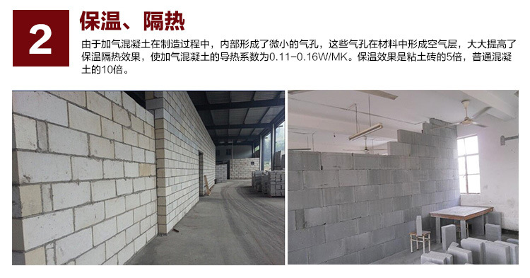 保溫、隔熱:由于加氣混凝土在制造過(guò)程中,內(nèi)部形成了微小的氣孔,這些氣孔在材料中形成空氣層,大大提高了保溫隔熱效果,使加氣混凝土的導(dǎo)熱系數(shù)為0.11-0.16W/MK。保溫效果是粘土磚的5倍,普通混凝土的10倍。