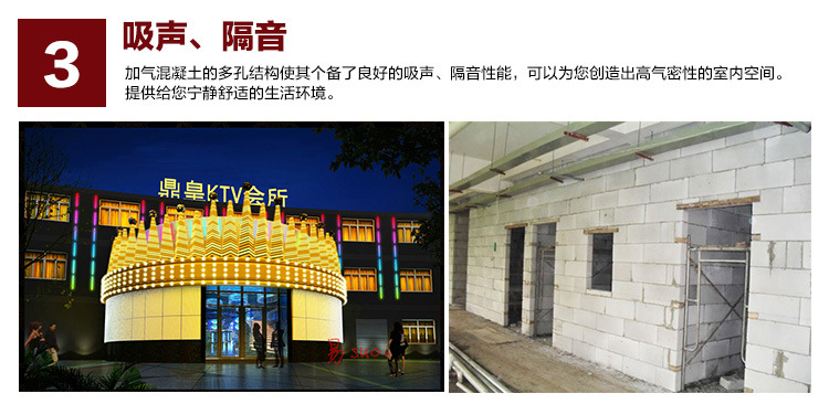 吸聲、隔音:加氣混凝土的多孔結(jié)構(gòu)使其個(gè)備了良好的吸聲、隔音性能,可以為您創(chuàng)造出高氣密性的室內(nèi)空間。提供給您寧?kù)o舒適的生活環(huán)境。