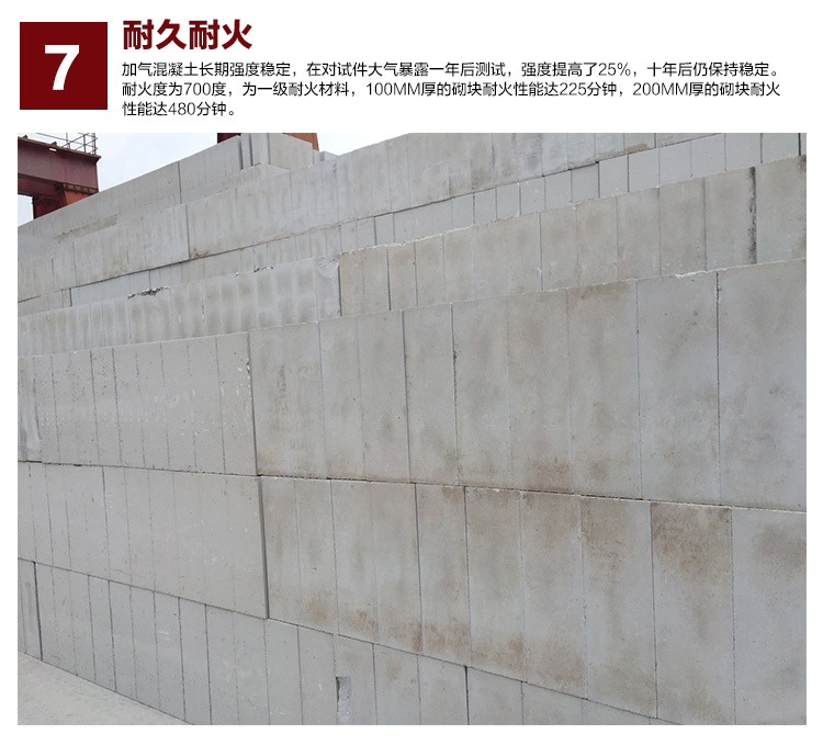 耐久:加氣混凝土長(zhǎng)期強(qiáng)度穩(wěn)定,在對(duì)試件大氣暴露一年后測(cè)試,強(qiáng)度提高了25%,十年后仍保持穩(wěn)定。